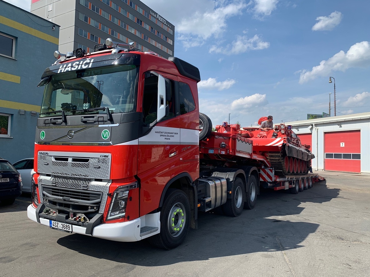 Společnost Volvo Group Czech Republic předalo dva nové tahače Volvo FH16 750 a návěsové podvalníky pro přepravu vyprošťovacího tanku VT-72B pro technické zásahy na železnici společnosti Správa železnic, státní organizace.