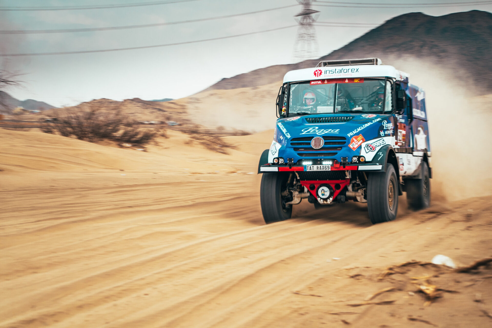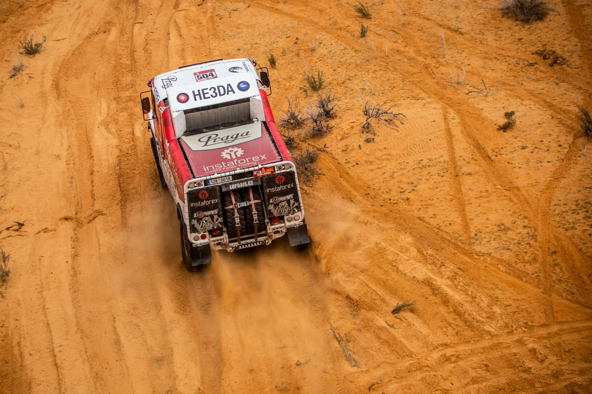 Maratonské etapy, které se jely v neděli a pondělí, uzavřely druhou třetinu Dakaru 2021. Minimálně některým členům Instaforex Loprais Praga Teamu tyto dva dny splynuly v jeden. V bivaku v Sakace, kde posádky musely péči o techniku zvládnout pouze vlastními silami, bylo totiž potřeba vyměnit téměř kompletní přední nápravu Pragy V4S DKR.