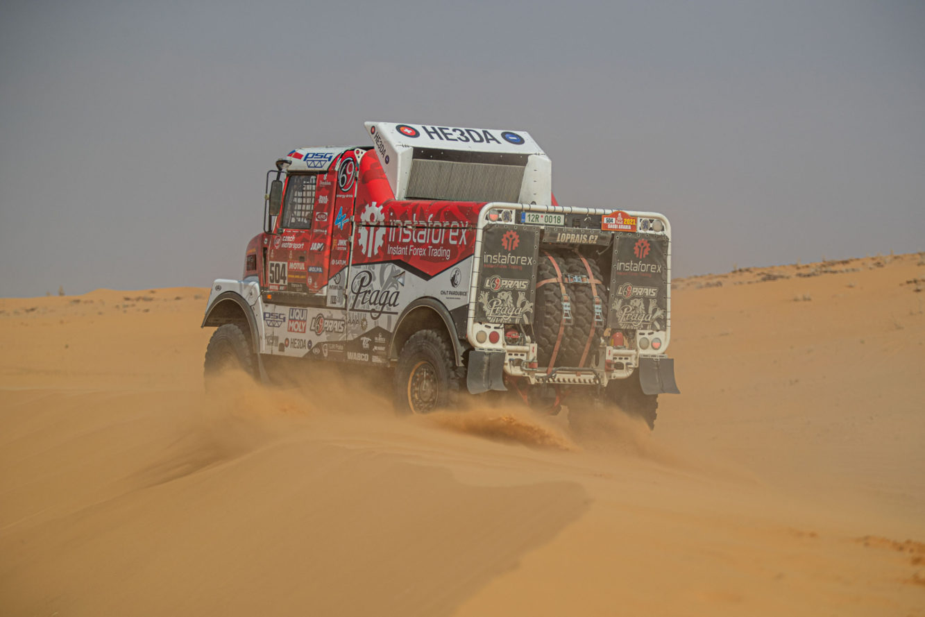 Poslední dny Instaforex Loprais Praga Teamu se na Rally Dakar 2021 nesou ve znamení čtyřek. Posádka Aleše Lopraise se s Pragou V4S DKR čtyři dny drží na čtvrtém místě průběžné klasifikace. Čtvrtá byla i ve úterní etapě. Proto také ráno vyrážela jako čtvrtá do dalšího dne, celou speciálku absolvovala v kleštích čtveřice Kamazů a v cíli ji od vítězného krajana Macíka dělily rovné čtyři minuty…
