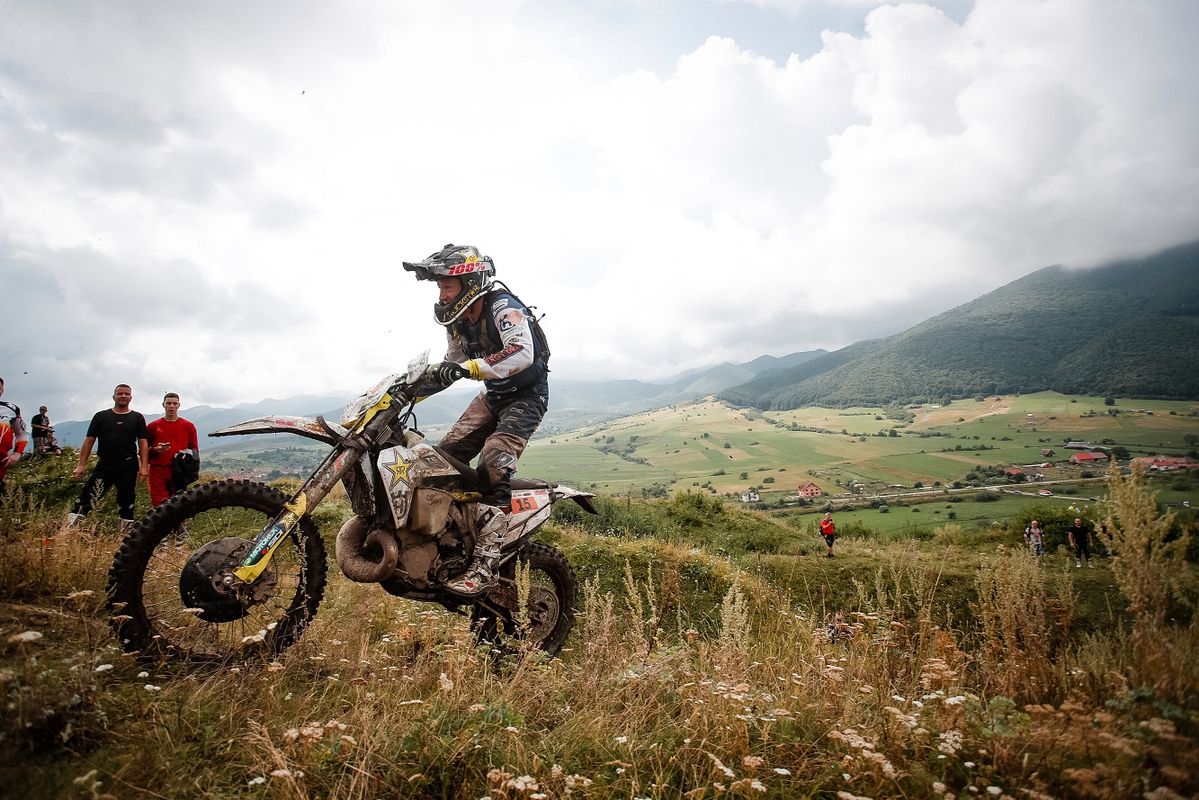 Graham Jarvis performs at the fifth stop of the World Enduro Super Series in Sibiu, Romania on August 2, 2019. //