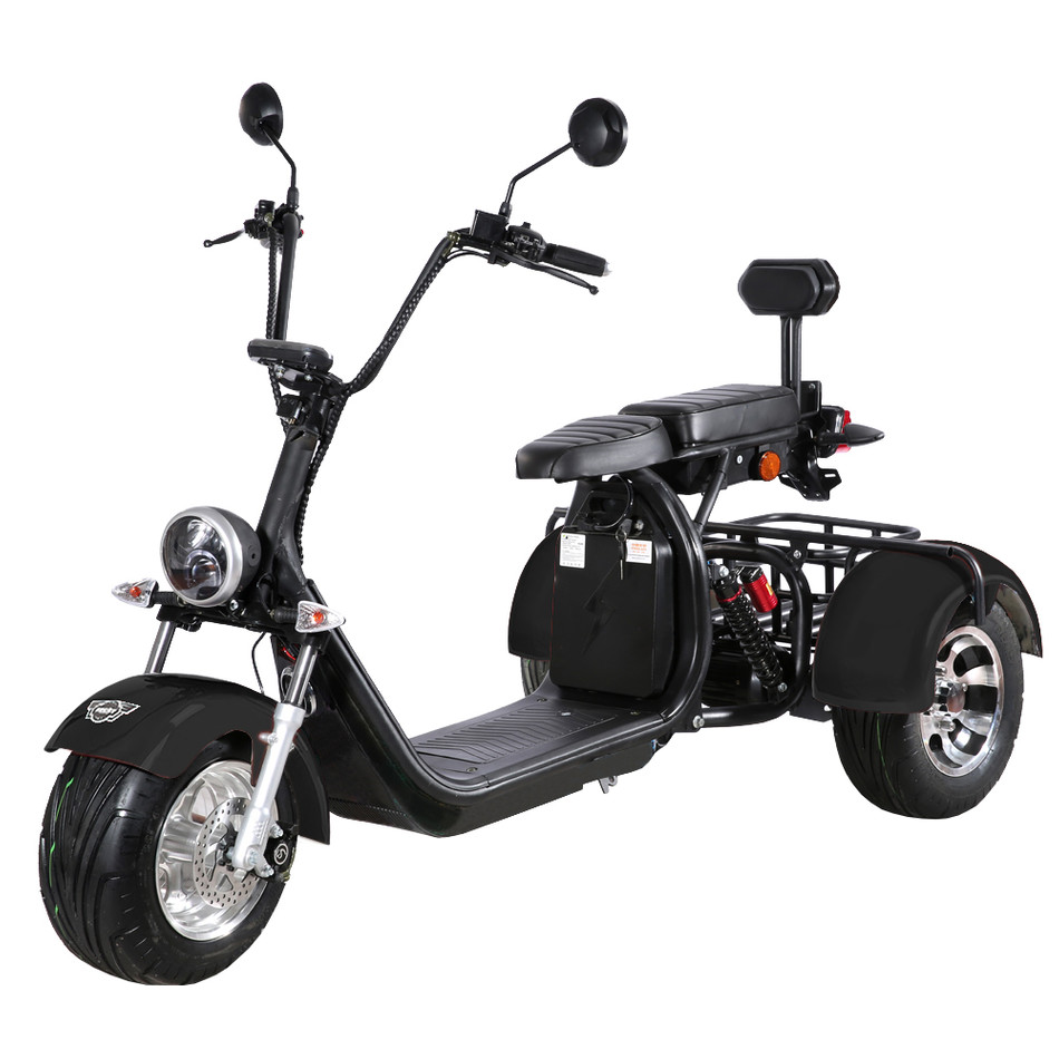 Tříkolka je samozřejmě vybavena vším, co byste od skútru očekávali. Veškeré ovládání je na řídítkách, o aktuální rychlosti i stavu akumulátoru informuje velký podsvícený displej mezi řídítky a pro převážení menšího zavazadla nebo nákupu lze využít koš umístěný pod sedlem na zadní nápravě. Napájena je moderním lithiovým akumulátorem, doba nabíjení je 3 až 5 hodin a na jedno nabití ujede až 50 km. Pro delší trasy je v podlaze tříkolky připraven prostor pro náhradní akumulátor, reálný dojezd se díky němu zdvojnásobí.