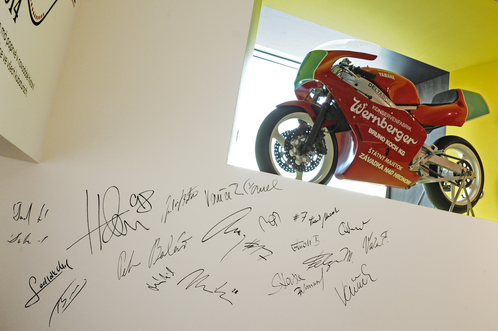 Díky aktivní spolupráci s Automotodromem Brno s.r.o. jsou vystaveny také moderní stroje jako například FTR M210 Cardion AB 2010 brněnského jezdce Karla Abrahama. Nedílnou součástí expozice jsou také dva infopointy a filmová projekce (záznamy ze Závodů družby národů, Velkých cen ČSSR i ze současnosti).