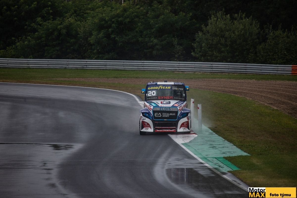 Domácí Martin Doubek startoval až v druhém sobotním závodě. „Čekal jsem, že bude pršet, takže otázka spíš byla, jestli dát úplně nové nebo opotřebené pneumatiky. Věřili jsme, že tolik vody nespadne, a tak volba padla na opotřebené. Bylo to správné rozhodnutí, ale kvůli vysokým tlakům pak v šestém kole přestaly fungovat a musel jsem je chladit v kalužích.