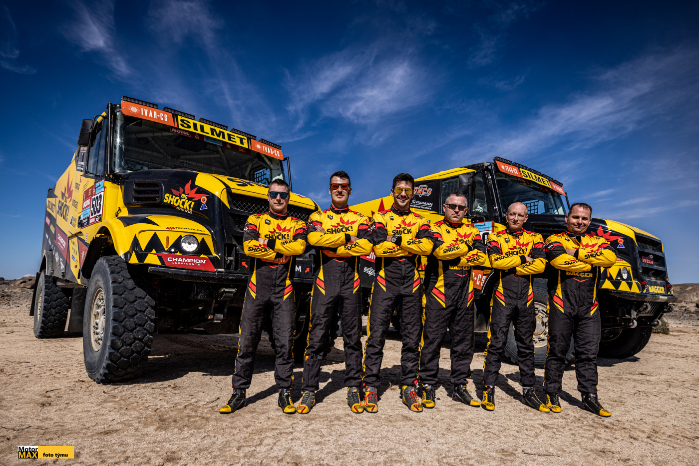 Tým MM Technology se na Dakaru stará o Karla a Arnošta – kamiony domovského Big Shock! Racingu. A také o Vincenza a Niciase, speciály spřátelených týmů Project 2030 a Italtrans Racing, vyrobené v Sedlčanech. Parta ostřílených profíků doplněná novými posilami v posledních dnech odvádí výbornou práci a patří jí za to velký dík.