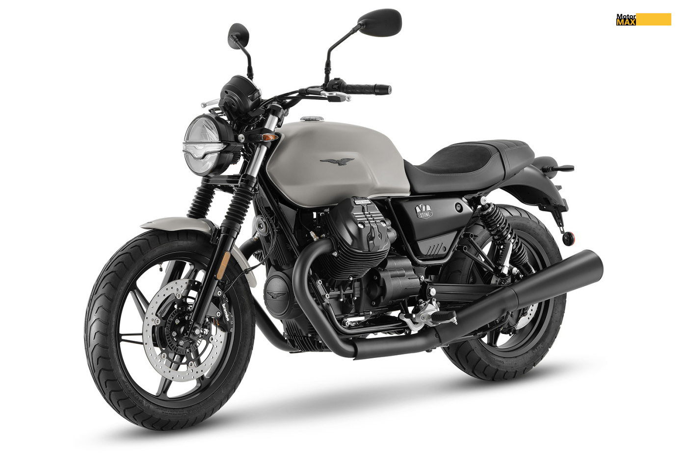 Model V7 Stone, poháněný 65koňovým motorem o objemu 850 cm3 je pohodlnější, lépe vybavený a má lepší finální zpracování, aniž by ztratil cokoli ze svého charakteru, kterým jsou všechny motocykly Moto Guzzi tak výjimečné. Nyní jsou k dispozici jeho dvě zcela nové barevné varianty Giallo Metallico a Grigio Alluminio, přičemž populární barvy Nero Ruvido a Arancione Rame zůstávají v nabídce.