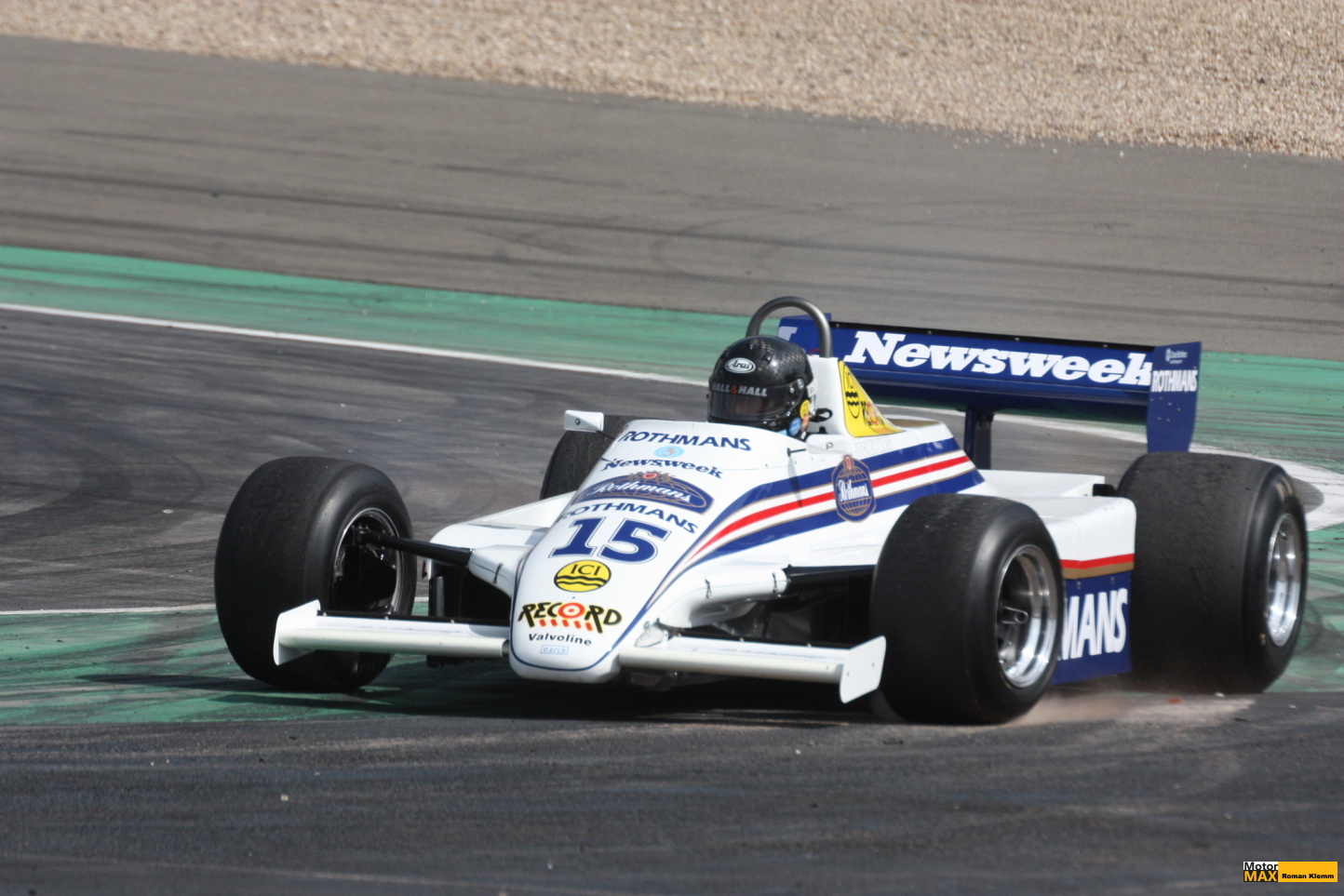 Francouz Michel Baudoin měl zjevné těžkosti udržet March 821 (roku 1982 v rukou Masse, Boesela a Keegana) na trati