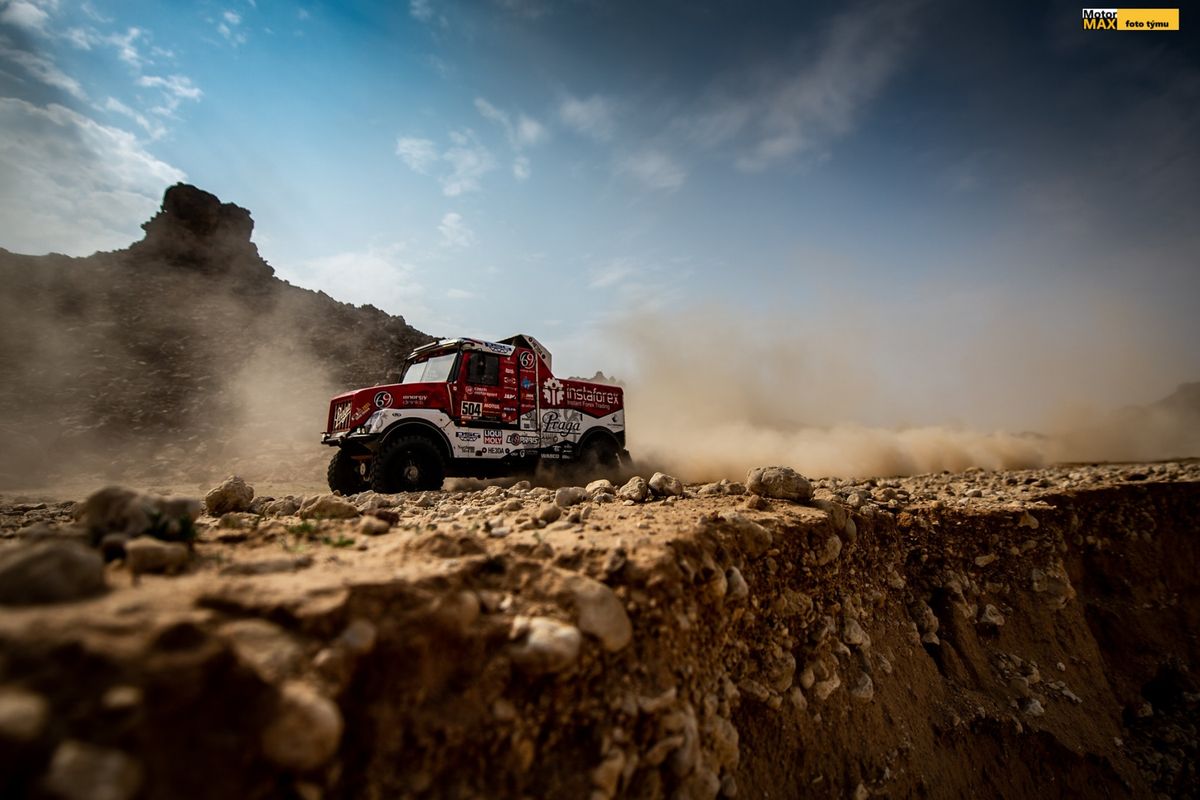 I tak jsme ujeli necelých 400 měřených kilometrů, které byly hodně o maximální rychlosti v písku. Výsledek nás i přes dobrý pocit z jízdy tak úplně netěší, ale než budeme mít nový motor s turbem, nemůžeme s tím nic moc dělat a na rychlých úsecích to bude vždy složitější. Tyhle typy etap musíme projet bez technických a navigačních potíží a ztratit v nich co nejméně.“