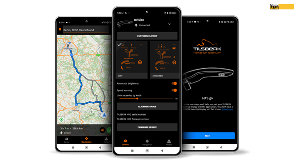 Tilsberk, značka společnosti Digades, vyvinula head-up displej, který na hledí přilby motocyklisty promítá důležité informace včetně rychlostních limitů, aktuální rychlosti, nadcházejících zatáček, doby jízdy a ujeté vzdálenosti. Zařízení lze připojit k telefonu přes Bluetooth a jeho baterie vydrží až 12 hodin. Systém také podporuje import tras prostřednictvím souborů GPX nebo přímé připojení k aplikaci calimoto.