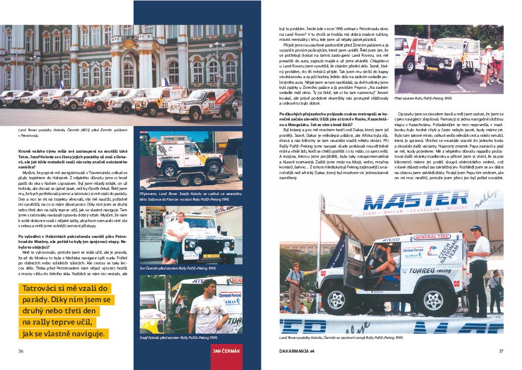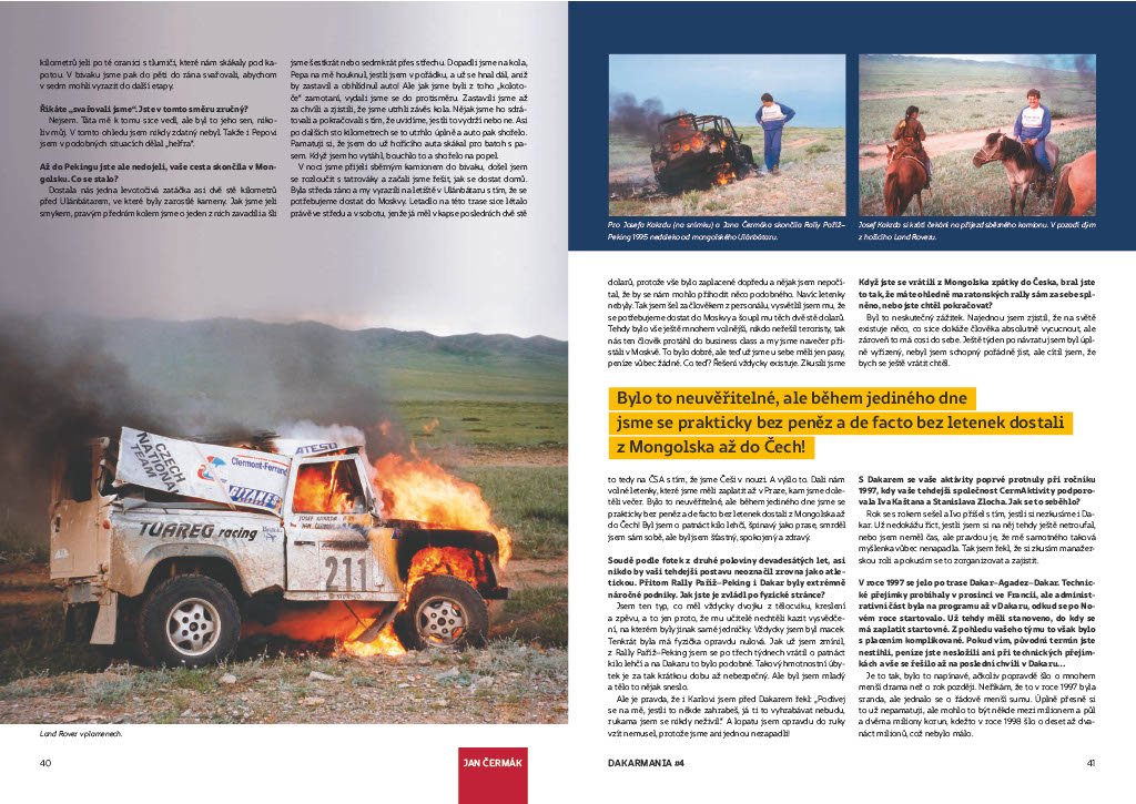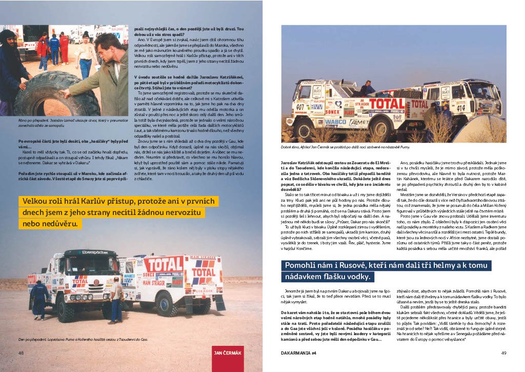 Píšeme o tom proto, že Jan Čermák je mj. fandou motoristického sportu, kde působil údajně i jako manager týmu a v roce 1998 byl dokonce členem vítězné posádky a navigátorem legendárního Karla Lopraise v jeho dakarské TATŘE.