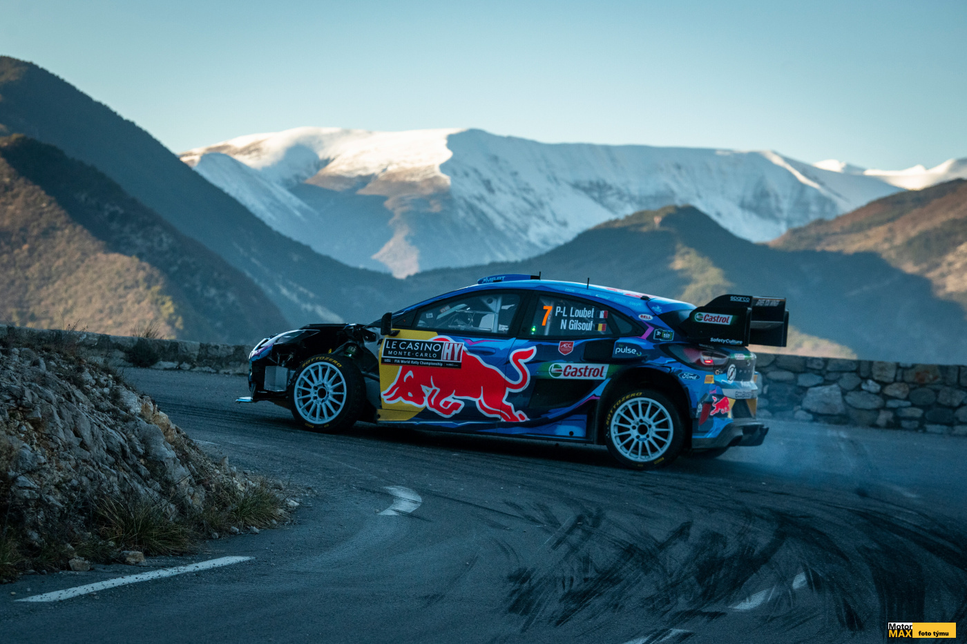 Pierre-Louis Loubet (FRA) and Nicolas Gilsoul (BEL) of M-Sport Ford WRT perform during World Rally Championship Monte-Carlo in Monte-Carlo, Monaco on January 19, 2023 // Jaanus Ree / Red Bull Content Pool // SI202301190369 // Usage for editorial use only //