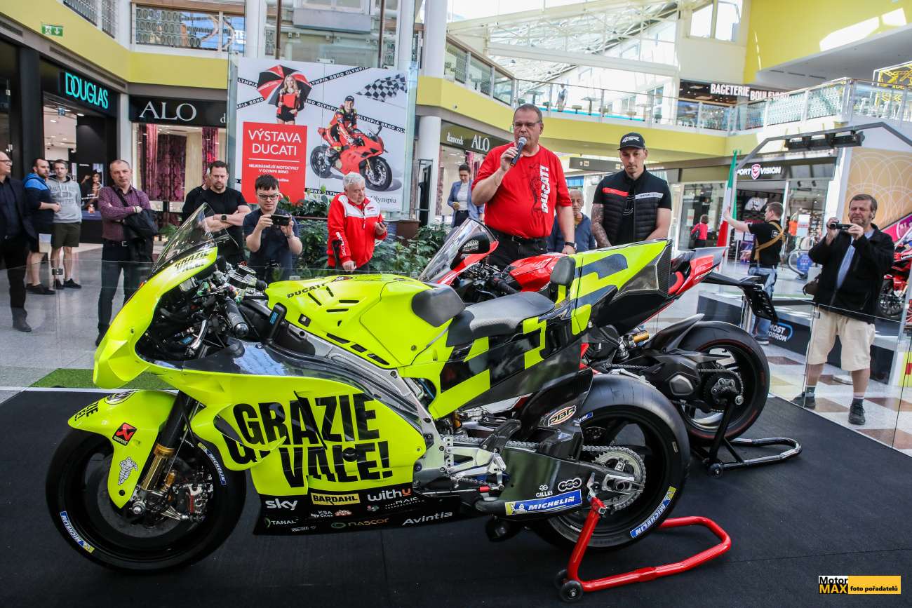 Olympia Brno hostí výstavu Ducati. Součástí je i speciál MotoGP, který vzdával hold Valentinu Rossimu při loučení s kariérou