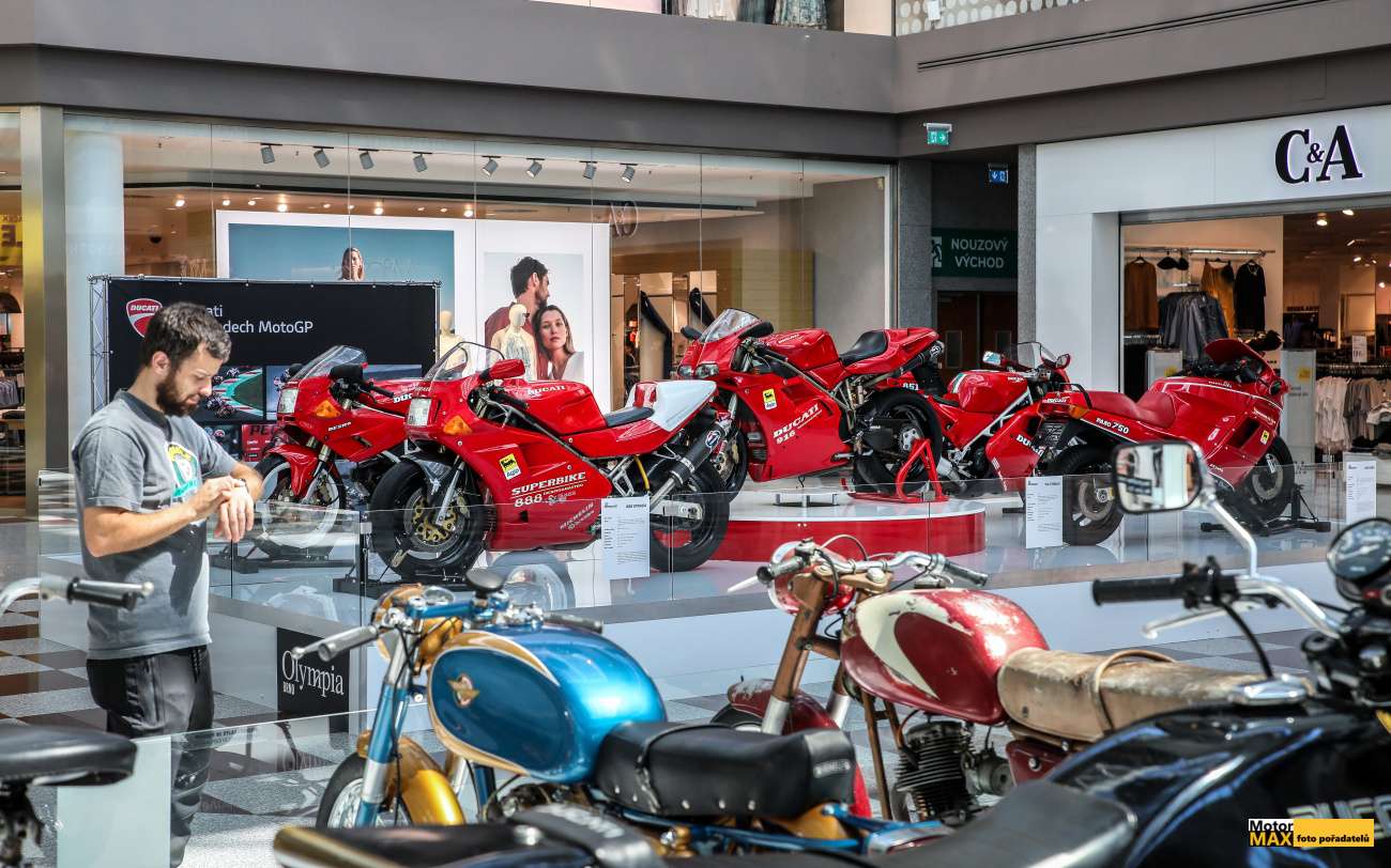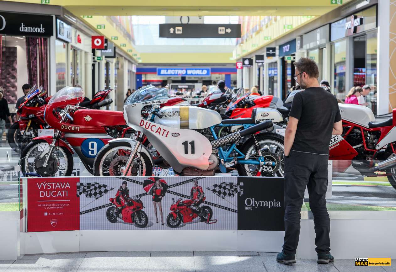 Návštěva obchodního centra Olympia Brno dostává dnešním dnem další, zcela výjimečný rozměr. Až do 26. května je tu k vidění výstava motocyklů Ducati, která je dokonalým průřezem historie slavné značky. Mezi 36 exponáty najdete legendární Ducati Cucciolo z roku 1949, ale také aktuální modely letošní sezony.