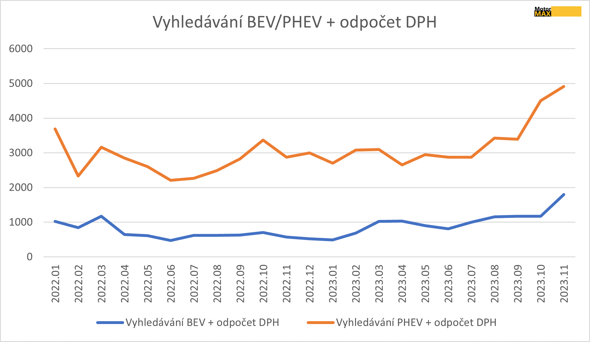 Nabídce nových elektroaut s přehledem dominovalo Volvo EX30 s podílem přibližně 10 %. S necelými 4 % následovala Škoda Enyaq a Kia EV6. Nejvíce hledaným vozem na čistě elektrický pohon byl ovšem Citroën Berlingo.