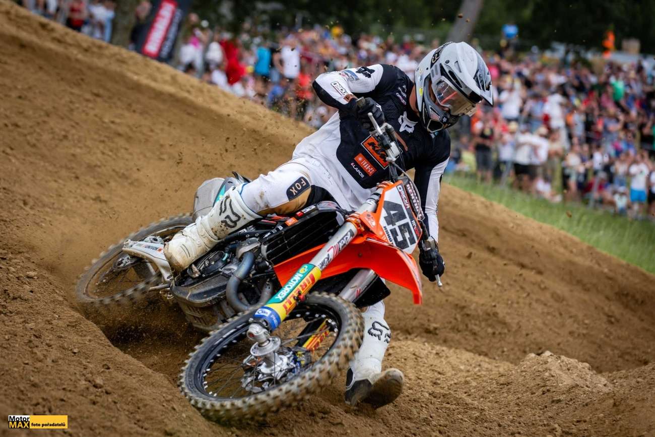 Druhou pozici v první jízdě vybojoval Tomáš Pikart (ZL N2P s. r. o) a třetí jeho největší soupeř Martin Venhoda (Q-Racing Team). Čtvrtý byl Daniel Stehlík a pátý Jaromír Romančík, ten závodil ve třídě MX2 proto, že trénuje před MXGP Loket, kde pojede ve třídě EMX2T. Lídr tabulky Adam Dušek (HT Group Racing Team) se nejen v úvodu závodu potýkal s technickými problémy a v jízdě skončil až na 12 pozici.