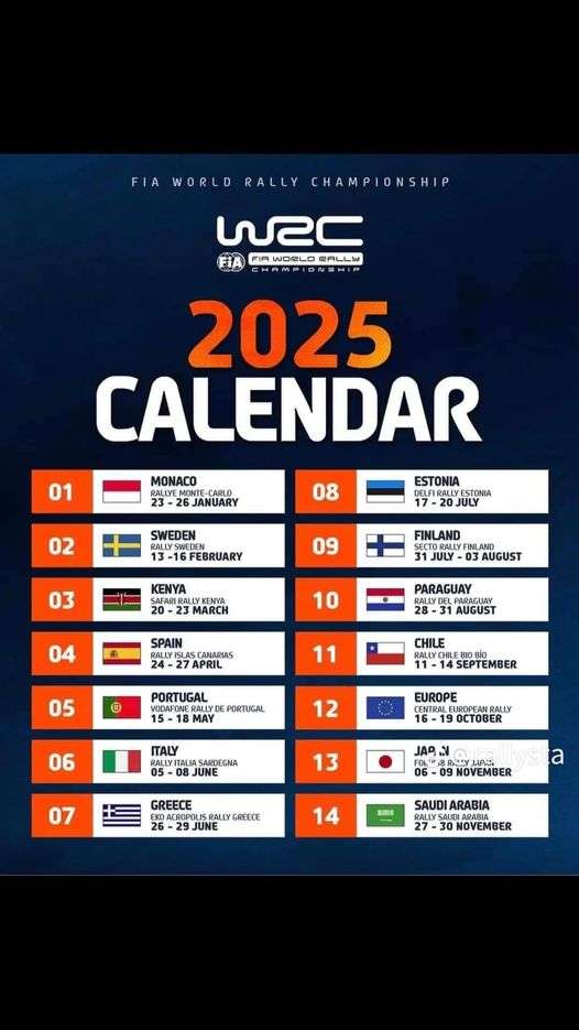 Kalendář WRC 2025 nabídne následující soutěže. Opět včetně CER také u nás a to ve stejném termínu,jako letos.