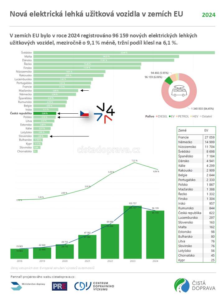 v roce 2024 14. největší mezi zeměmi EU, s těmi elektrickými pak 17., vyplývá z aktualizovaných informací