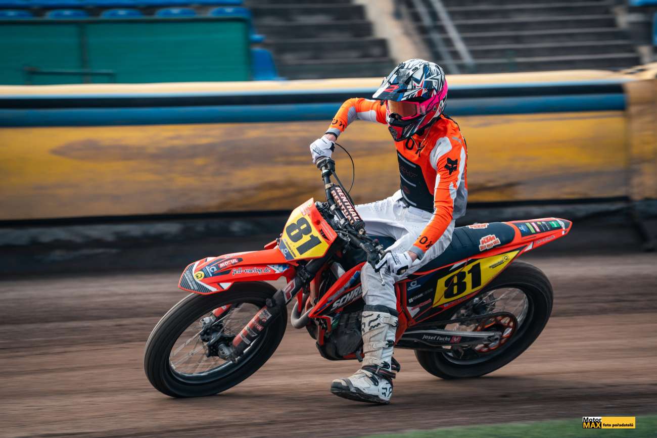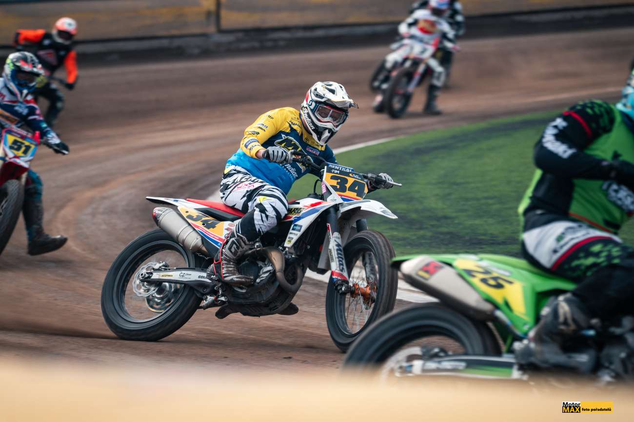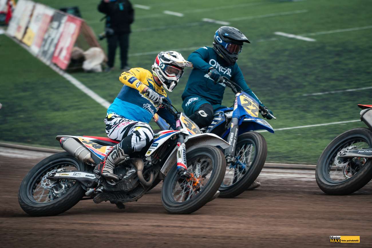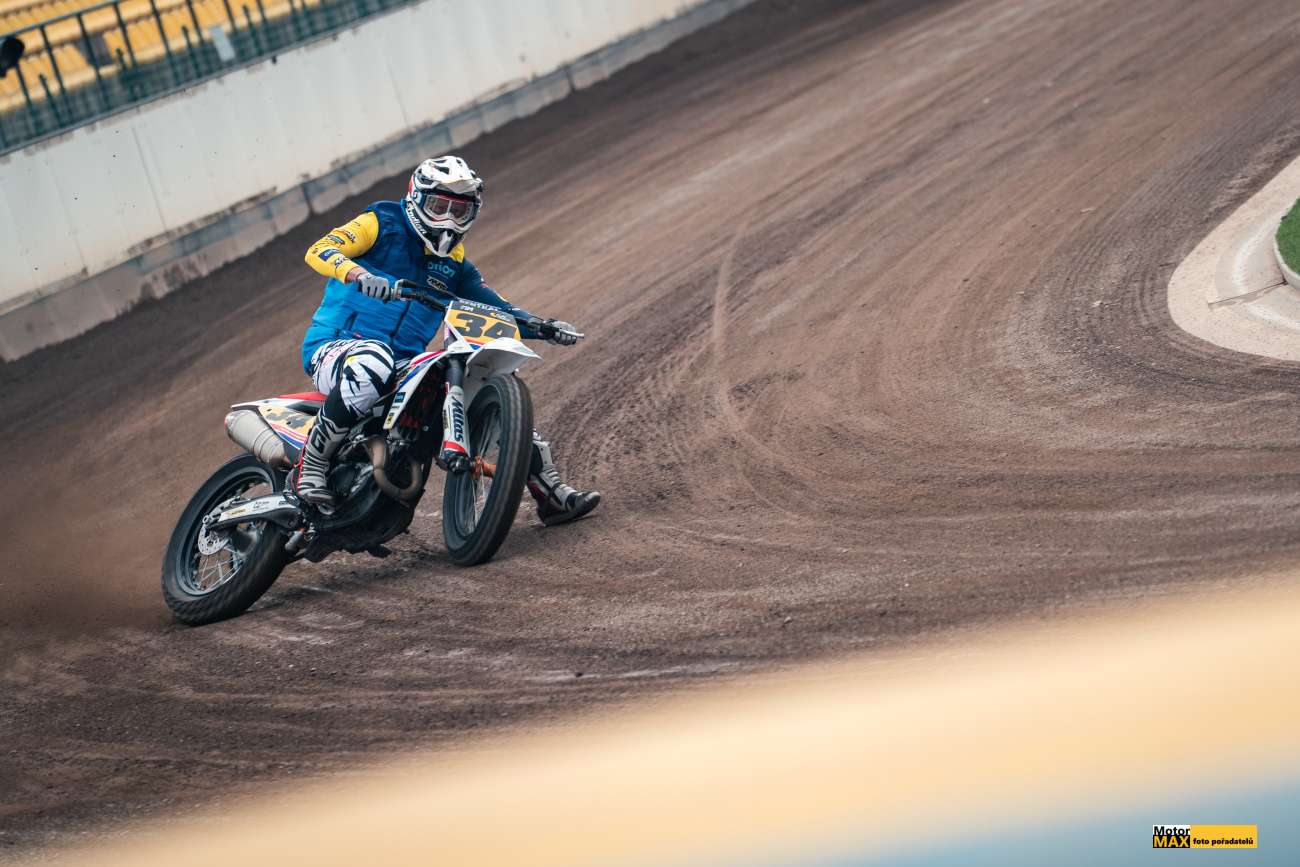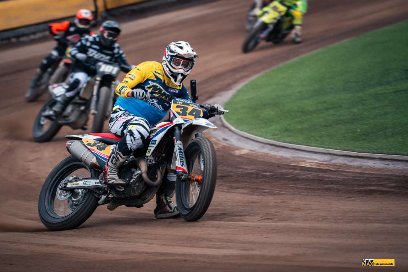V královské třídě českého flattracku měli fanoušci jasno, vyhraje Krajčovič nebo Svědík. Ale… Nesmíme zapomínat na další rychlíky, kterých do hry promluvilo hned několik. V rozřazovacích jízdách si výborně vedl Klaus Mayr #25 z Rakouska, který potrápil jak Ervína Krajčoviče #34, tak Ondřeje Svědíka #22. Pozadu nebyl ani Nikita Alyani #43 z Německa a Vít Janoušek #51. Zmíněná trojice českých závodníků patřila mezi první postupující do Finále.