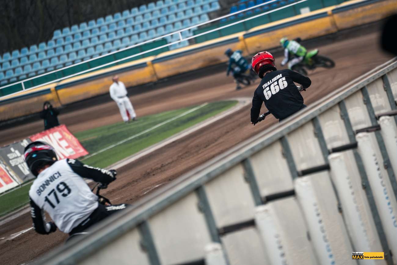 Do prvního letošního závodu bylo přihlášeno osm závodníků. Závodnice Linda Schlixbierová #100 bohužel do závodu nenastoupila, ale i tak jsme mohli vidět krásné rozjížďky a sedm mladých bojovníků, kteří chtějí vítězit. Oči fanoušků směřovaly na výkony druhé přihlášené závodnice Barbory Čmochové #51, která rozhodně nezklamala a kluci musí počítat s tím, že je Barča ještě pořádně potrápí, ukázala to ve finálové jízdě, kde dlouhou dobu bojovala o pátou pozici.