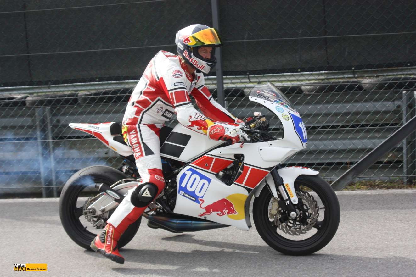 Závodní Yamahu 250 prohnala po nebezpečné trati legenda ledové ploché dráhy a SuperMoto, Franky Zorn.