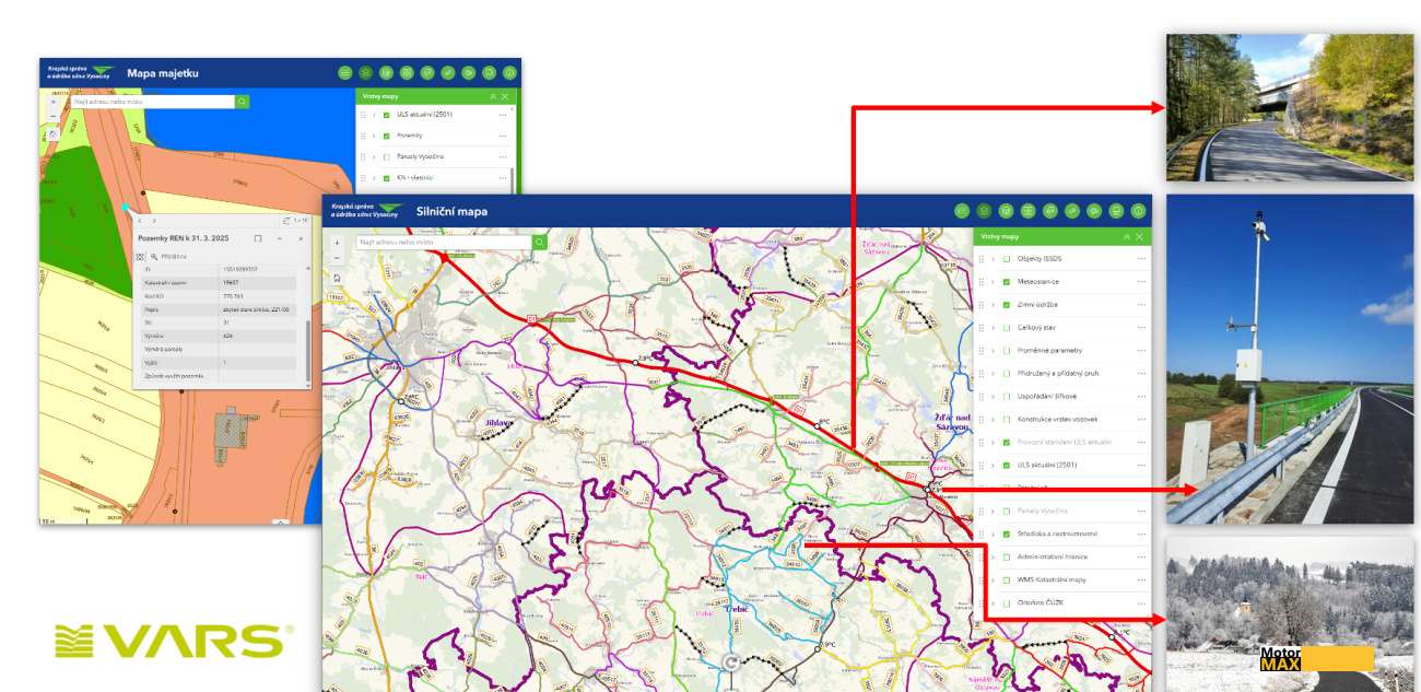 Příklad regionu, který posunul správu silnic na digitální úroveň, je Kraj Vysočina. Tamní Krajská správa a údržba silnic (KSÚSV) nedávno spustila systém INFRA-FIM, vyvinutý společností VARS BRNO. Nový informační systém propojuje pasportizaci a údržbu majetku, meteorologická data i monitoring vozidel údržby. Silničáři tak mají přehled o každém kilometru krajských komunikací – včetně aktuálního stavu vozovky, mostů nebo doprovodné infrastruktury.